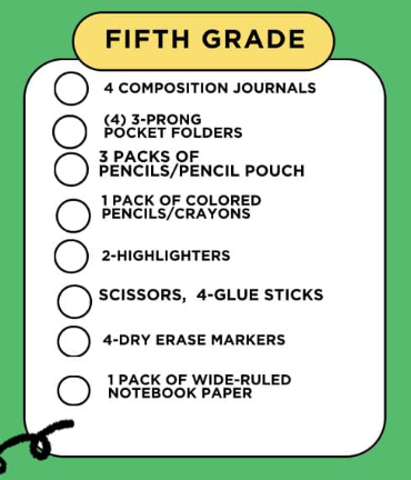 2025-2026 5th grade supply list
